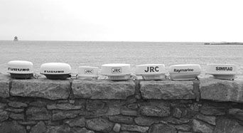 Among the monochrome systems we selected are the Furuno 1623, the Furuno 1712, the JRC RADAR1000 MKII, JRC RADAR 1500 MKII, and the Raymarine SL72 Plus. We tested two color systems: the JRC RADAR 1800CP, and the Simrad RA30.