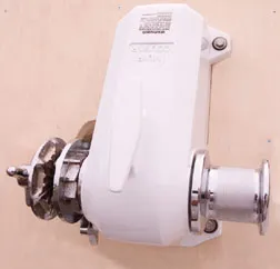 The Muir Cougar, designated the HR1200, comes standard with a 1,000-watt electric motor and both a gypsy and capstan. A 1,200-watt motor or hydraulically powered version is optional. The capstan and gypsy are both constructed from marine-grade bronze and finished with chrome. An aluminum windlass housing finished with marine-grade high-gloss white epoxy paint carries the components. You order the Muir with or without a built-in cleat atop the case. A rope chain management system (RCMS) is also optional.