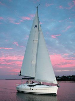 The Bergstrom and Ridder (B & R) rig aboard the Hunter 45 is situated well forward. Henderson is a devout fan of smaller headsails and larger mainsails for cruising boats because that arrangement affords easier sailhandling. The arrangement also solves some design challenges.