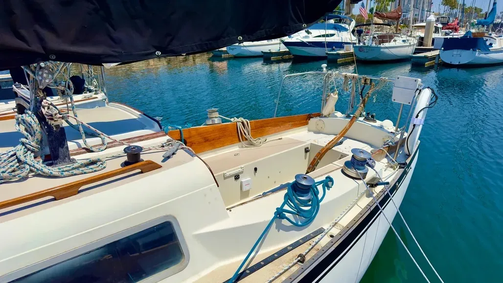 Owners report that the boat has one negative sailing characteristic: a tendency to rapidly develop weather helm as she heels. The normal, rational remedy is to reduce sail.