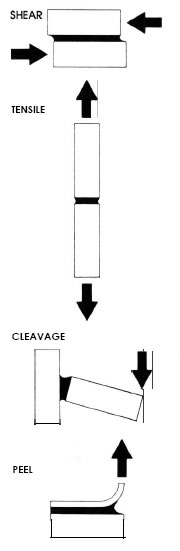 Most adhesives perform better when the primary stress us shear or tensile. However, in most applications a combination of stresses is involved. For best performance the entire bond area should carry the bulk of the stress.