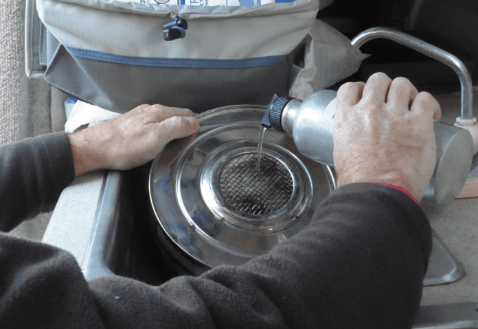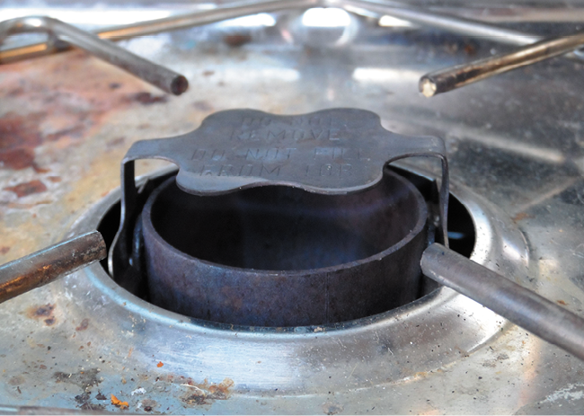 The high ethanol content of fireplace fuels produces a more luminous flame, more heat, and leaves some soot on your pots. Because fireplace fuels come in one-liter bottles you’ll pay more for them than the hardware store blends, but if you buy the fireplace fuel by the case, the added expense isn’t that great. The advantage of these bottles is that they are designed to pour without spilling; some even include protections against flash-back if poured on an open flame. Despite these protections, never attempt to pour any fuel until you’ve let the stove cool completely.