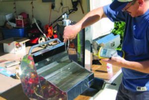 These stainless grills often show discoloration after the first use. This is not corrosion, but rather chromium oxide formed from a chemical reaction with oxygen when the metal is heated. Brushed stainless, used on the Sea-B-Que, Sport Extreme, and the Tasco, is more susceptible. The polished stainless grills will retain most of their luster on the exterior but will be discolored on the inside. Greasy smoke will stain these grills as it escapes through the spaces on the grill body. Because the stainless-steel grill bodies are easily scratched, oven cleaner is needed for an all-out clean. The chemical cleaner must be thoroughly rinsed off before the grill is used again. This may require some disassembly to be sure your next meal is not tainted with chemicals.