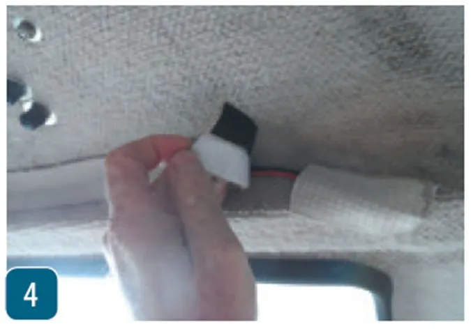 4. Wiring covers. Hiding wires is always a challenge. You may need to drop the ceiling, drill holes, scrape, glue, or perform extreme boat yoga, all for the sake of appearance. However, if the cabin in question is carpeted, you can hide them in plain sight while maintaining instant access. Cut strips of the carpet or matching fabric about 1 inches wide. Hot knife the edges to prevent fraying. For more color variety, try a cotton towel, but use varnish at the edges (a hot knife wont work here). Lightly coat one side with contact cement or 3M Super 76 spray adhesive. This will allow self-adhesive Velcro to bond permanently. These hider strips will stick to the carpet liner, securing the wires in an accessible and chafe-free manner. So long as wires are run along natural corners, they are unobtrusive.
