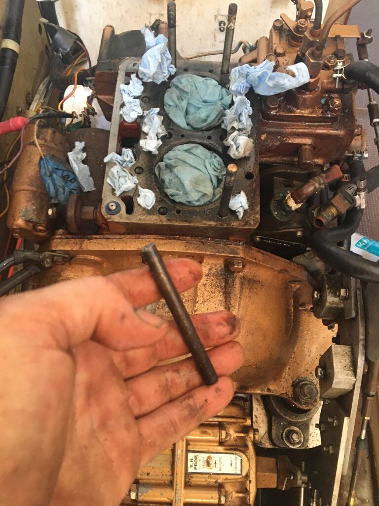 Of course, the Internet and global air transport have made sourcing parts easier these days. And as long you’re stranded near a WiFi connection, Starbucks, or Internet cafe, YouTube videos can help guide you through many repairs (and disrepairs, choose carefully). I’m finding this out as I embark on my latest project: replacing a sheared cylinder bolt that I recently discovered on Opal while replacing the raw water pump impeller. (Funny, how quickly a routine service job can spiral.)
