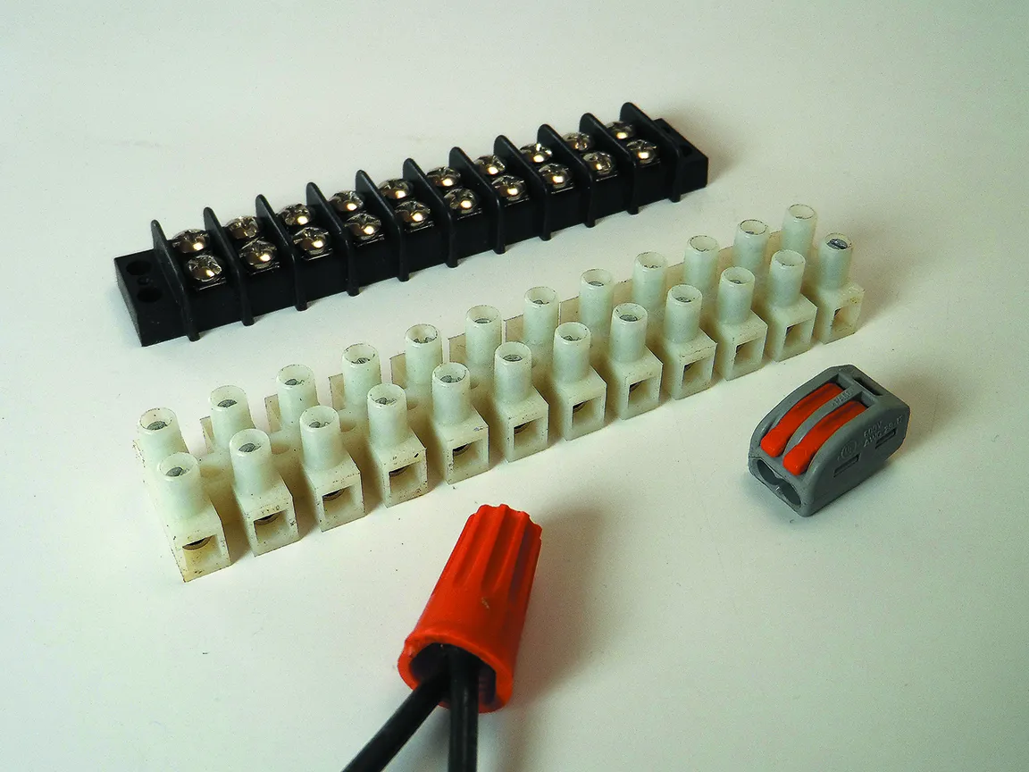 Barrier blocks. The standard for most marine applications using typical wire sizes, these are very secure if the wires terminate with crimped-on rings or retained fork fittings. Better quality blocks are constructed of tin-plated copper and stainless steel, and are very corrosion resistant. With the addition of jumpers, you can add branch circuits. Using these with smaller wires can be problematic, since it requires crimping on terminal fittings.
