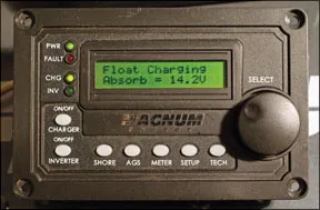 The Combi is engineered to be “stackable,” or paralleled with a similar inverter to double the effective output. Also, the Combi is completely network capable, which may be significant for the more sophisticated boats using NMEA 2000 integrated systems. Another unique feature of the Mastervolt is its free software program, “MasterAdjust” (downloadable at www.mastervolt.com), which allows the user to check the status of the battery charger function and the inverter and power transfer functions, and to set switching parameters to meet system specific needs, via a laptop computer.