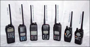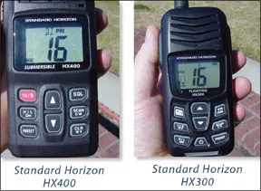 Handheld VHF radios offer many of the features provided by fixed VHFs, but their lower antenna height and reduced transmit power means they have a shorter range (about 3 to 5 miles versus 10 to 15 miles for a fixed-mount VHF, or farther if theres a masthead antenna). However, they have one big advantage over their mounted brethren: portability. Portability allows them to serve as the primary radio on smaller boats, as an emergency backup or secondary working unit to a fixed VHF, or even as a way to summon help during an unexpected swim.