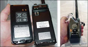 Like the HX290, the HX400 battery pack forms the back half of the radio. If you plan to cruise off the beaten track, we recommend taking a backup battery pack along since you wont be able to pick one up on the fly. Or you can use the optional alkaline battery tray with six AA batteries as an alternative power source.