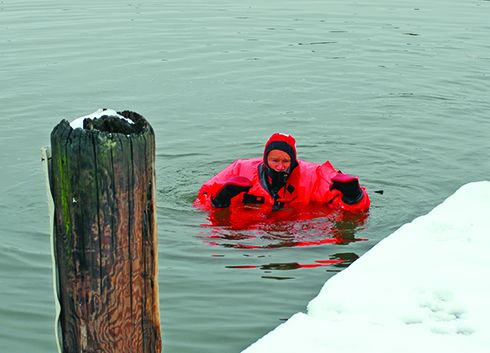 For us, a good quality breathable dry suit worn with a heavy weight fleece unisuit undergarment [and other winter undergarments as needed for conditions] is as good as [or perhaps even better than?] the ‘Gumby’ survival suits we used to keep onboard for emergencies. [Subjective comparison; I’ve used both more than once in cold water survival training. Gumby suits make it difficult for me to easily/safely walk around and do things on a boat— especially when rushed like during an emergency situation…]