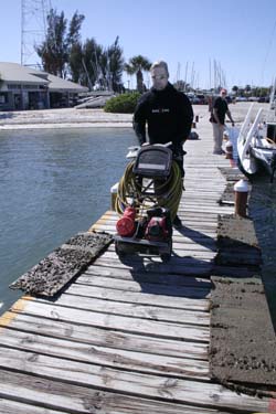 The owner of Skimmer, Mike Collins, is hopeful. He is committed to protecting the environment, which has so far been a boon for his bottom cleaner Dave Mieron (right). Skimmer was one of the guinea pigs for the first batch of Interluxs Pacifica paint, and this began sprouting barnacles after six months in the water. The paint was reformulated almost immediately, and the newest formula, Pacifica Plus, has proven much more effective than that first experimental batch. We generally recommend that readers looking to switch to a more eco-friendly formula wait at least one year-better yet, two years-for the paint to prove itself in the field. Yes, manufacturers do a ton of field testing before launching a new paint, but we’ve seen a few over-hyped eco paints – as well as some conventional formulas – deliver less-than-stellar results.