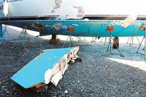 Afterward, Naranjo and the owner discussed the details of the repair, including the possibility of hidden, widespread damage from the two groundings. These included the dynamic loads imposed upon the chainplates and rigging, the likelihood of hidden resin-cracking, and potential for more delamination and core shear linked to the torque induced by the accident. In short, any serious allision causes overt and hard-to-detect damage far from the actual impact zone, and these can lead to more problems down the road. When buying a used boat, look for a good pedigree, but also look for signs of previous blunt-force trauma. A good surveyor will be skilled in such structural forensics, and he or she will do more than comment on the gelcoat shine.