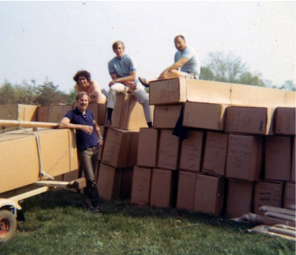 My wife was not too pleased with 140 cardboard boxes (each box holding a hull) in our backyard. She had just given birth to our first child three months earlier! To complicate things, in those days, there werent trailers for cats, so we had to make our own out of small utility trailers, 2 x 6 lumber and cheap carpet.