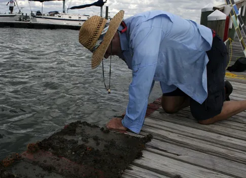 I have a few other hats. Ive got a new Columbia baseball hat made with some sort of new “Omni Freeze” fabric that acts like an air-conditioner and has a French foreign legionnaire-style neck flap; another long-billed hat with a wide brim around the back to cover my neck (an Aussie style popularized by Florida fishing guides); and a canvas Tilly-type hat with a neck flap that I picked up at the Miami boat show. Ive also got a couple of pull-over buffs that cover my neck and cheeks (and nose, if I like) when Im on the water for a long time. These days, I can’t help but feel like Butch Cassidy on the way to a holdup when Im out on the water. I expect my eldest son to start ribbing me about this any day: You keep thinking, Butch, thats what youre good at.