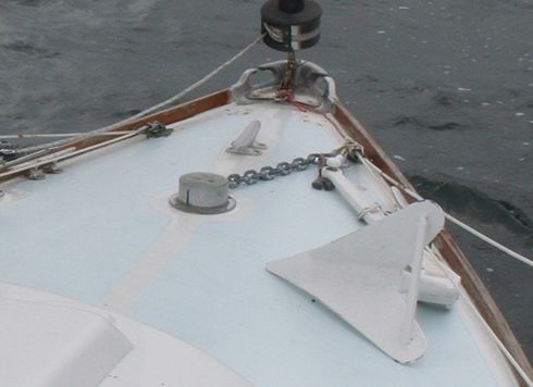 I was always amazed at how much water could seep through the chain-pipe and into Toscas anchor locker when a sea was up or we were punching into a head sea-although punching would hardly describe the ungainly motion of a gaff-rigged ketch to weather. Wallowing? Submarining? Regardless, a waterfall greeted whoever dared venture into the v-berth to check on the strange gushing noises. Still, I was happy to have a three-inch diameter hole rather than one of the ice-cream scoops that some contemporary boats have on their bows (see Practical Sailor March 2011).