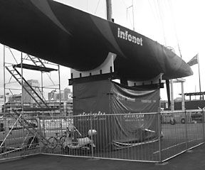In a reversal of technology, several America’s Cup syndicates have built boats using female molds-similar technology to that used by production boatbuilders. The catch, of course, is that the female mold process is expensive for one-off construction. As no more than two boats can be built from an America’s Cup mold, the cost of a female mold is amortized over only two hulls, rather than the dozens or hundreds of hulls pulled from production-boat tooling.
