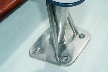 Moisture with little or no oxygen invites rust. Salt, which helps to hold moisture, is a catalyst for the process. This is why rust normally starts at the base of bedded stainless-steel hardware, at longitudinal joins of rolled handrails, or in pitted areas. Welded areas have a higher susceptibility to corrosion, because heating stainless can destroy its stainless qualities. That’s why it is better to cut stainless steel by hand with a hacksaw than with an electric cutting wheel, which overheats the metal, causing stainless steel to rust where it was cut.