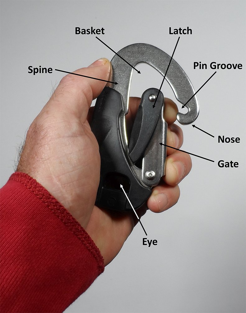 - Our testers found carabiners with grooves in the nose to capture the gate pin (Gibb, Gibb-style Spinlock, Wichard orginal and others) very frustrating to clip on and –especially–off webbing. They caught almost all the time. Watch out for nose-hooking, in which the jackline slips under the gate. If you clip directly into a jackline, make absolutely certain that you are properly clipped in by giving the tether a hard tug. (This does not guarantee you can’t get nose-hooked in an accident, but will help avoid it.) Most locking carabiners have evolved away from this mechanism, most going to key lock gates, where a bulge on the gate fits into a slot in the nose, making for smoother clipping. Additionally, even though climbers use many webbing slings to rig anchors, they avoid clipping directly to the webbing by pre-rigging carabiners on the slings before climbing. Doing this on your boat may be inconvenient, but it will avoid snags.