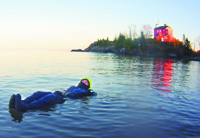 A couple years after Ralph’s report Drew Frye went a step further and carried out a facsimile of the U.S. Coast Guard standard survival test, spending six hours in 32-degree weather while wearing a drysuit (see “Soul Drysuit, 2-year Update,” download PS February 2013). I tried to duplicate Frye’s feat on Lake Superior in a Mustang drysuit a few years ago, but I lacked key components that Frye wisely included, neoprene gloves, and a 5-millimeter neoprene diving hood (I did have neoprene socks). According to Frye, a neoprene beanie will serve instead of a hood if all you expect in your sub-50-degree sail is a quick dunking or cold rain.