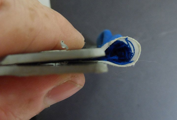 1.Cut a piece of Sunbrella (old and floppy is best) 10 by 8 inches. Fold this along the 10-inch length and use polyurethane caulk to glue the edges together with a 1.25-inch overlap. The finished dimension is 10 by 4 inches.