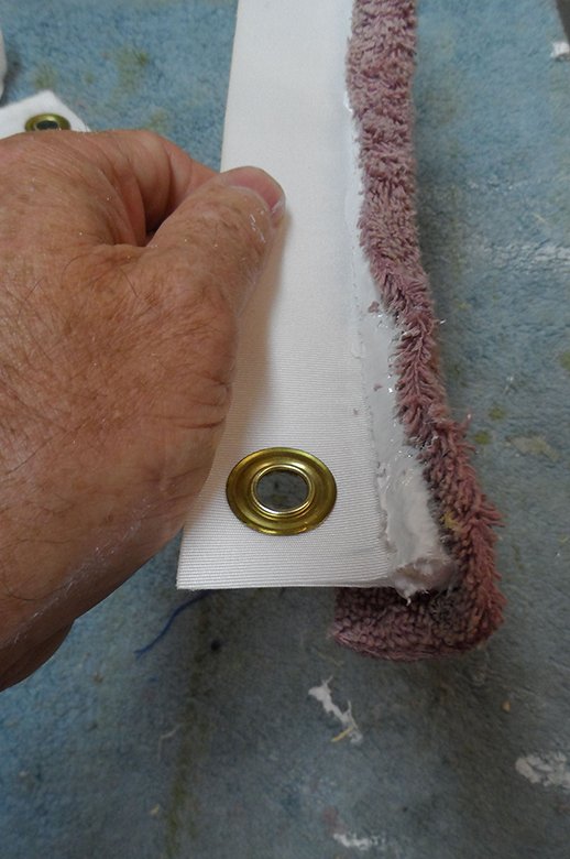 The diameter can be increased for more effective scrubbing by gluing fabric to the outside of the bolt rope (see photo above). We liked terry cloth for this, but Sunbrella slides better. Adhere with polyurethane caulk. Alternatively, the cloth can also be sewn in place.