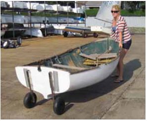 Several years ago, West Coast designer Russell Brown came out with a kit for the PT11, a dinghy comprising two parts that nest inside each other. And the carbon-fiber Wing Dinghy, which we compared to the popular Trinka in October 2009, is so light that one person can easily load and stow it.