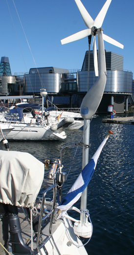 The units I saw in Bergen looked like they were the Aquair 100 made by the British manufacturer Ampair. In our article on Choosing a Wind Generator, we mention Ampair, and we describe its wind generator in greater detail our marine wind generator test (available only to subscribers). We have not yet had a chance to test the Aquair 100, but it operates in a similar way to the Hamilton Ferris unit. Both tow a small impeller that looks-and this is one of the problems-like a big fishing lure with propeller blades. As the impeller spins, it turns the generator fixed to the boats stern. Old-timers may remember how much the fish seemed to like those pricey impellers for the Walker Knot Log, even though they were painted black.
