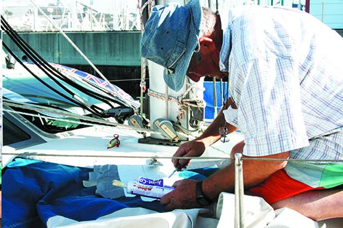 When applied to either polyester or laminate sailcloth, 3M 5200, Loctite PL S40, and Sika 291 failed completely before two years were up, peeling apart under their own weight. This wasn’t a big surprise, since we have long known that polyurethanes make poor glazing adhesives unless the surface is properly primed with a UV blocker. The UV transmitted through the glazing, or fabric in this case, and attacks the critical bond area.