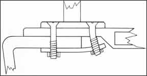 When drilling holes in backing plates, be sure to drill slightly oversize to allow for the bolts that are not perfectly perpendicular to the plate. To drill for a l/4” bolt, use a 9/32 drill for the backing plate holes. The easiest way to insure proper alignment for the holes is to clamp the backing plate to the stanchion base before drilling pilot holes in the backing plate by using the hardware fastening holes as a template. Don’t drill these pilot holes oversize, as you would enlarge the fastening holes in the hardware, making them more likely to leak.