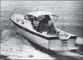 Patterned after the seakindly, fullkeeled New England lobster boats and powered with a single gas or diesel engine, the Alura 30 has been widely accepted as an easy-to-handle offshore 20 knot sport fishing boat with a cruising range of more than 450 miles at 15 knots. At that speed, turning 3100 rpm, its 270 hp Pleasure craft gas engine burns only about seven gallons of gasoline per hour.