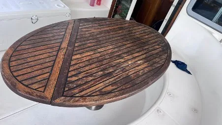 It appeared as if there was pulp peeling away from the wood, and we now expect we will have to sand and refinish some of these surfaces. It was most visible on the table, more so than on the bow seat surface tests, and I expect to have to refinish all these surfaces in the near future.