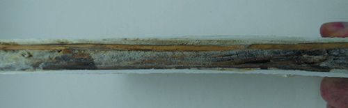 If you’ve ever seen the messy, wet mulch removed during a typical re-core job, you’re probably not surprised that our injection test strips were pretty weak. You’re gluing a damp, dirty surface using mulch-thickened resin. You will fill some voids and add some stiffness, but the rot will continue.
