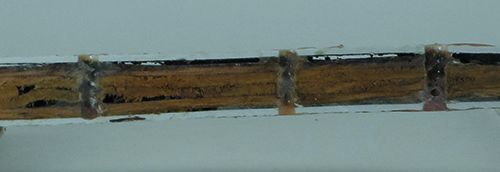This is a 1983 boat, and has been on the hard for over 10 years. Today is cool and dry: Gorilla Glue time!!