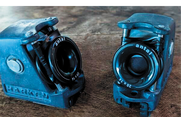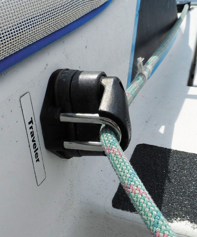 High-load blocks. We’ve experienced crushed plastic bearing and sheaves in several high-load turning blocks, all related to halyards. While we are fans of composite blocks for applications where light weight and low friction are a priority, metal is preferred for high-load blocks. Very high-load blocks—masthead sheaves, genoa leads, and some deck organizers are better served by non-ball bearing systems with primarily metal parts. Low friction rings can serve as turning blocks, but you will need to limit the number of turns and use slippery Dyneema rope, with covered tails for grip and handling as needed.