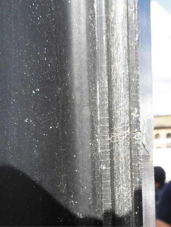 Water absorption. All plastics absorb moisture, which can lead to hydrolysis, a breakdown in the chemical bonds in a polymer. Some of the more moisture-absorbent polymers include polycarbonate, nylon, and polyester. Polyurethane caulk can also fail due to hydrolysis. (PS documented 3M 4000UV’s hydrolysis-related failure in 2020, see “PS Seeking Reports of 4000UV Failure,” PS April 2020). The stronger ester linkages found in vinylester resins are more resistant to hydrolysis, which is why it is preferred for gelcoat.