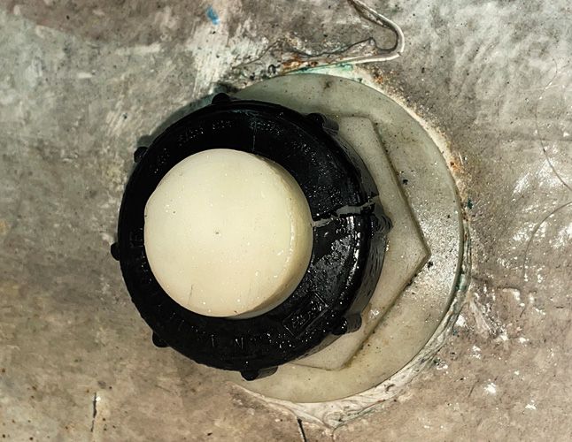 Through-hulls. Plastic through-hulls have their converts. We’re on the fence. Marelon and TruDesign through-hulls can provide reliable service, but white-nylon through-hulls do not have sufficient UV protection. You can expect white nylon through-hulls to fail within 5-10 years. Some plastic through-hulls are shaded by plastic clamshells, but if the clamshell falls off or is removed, they become vulnerable.