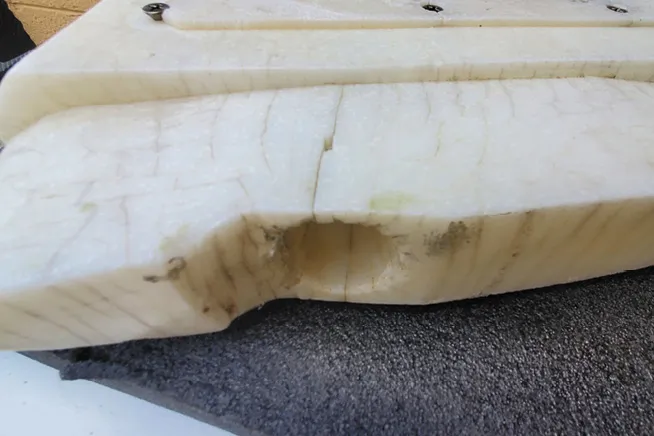 Both high-density polyethylene (HDPE) and weaker, more elastic, low-density polyethylene (LDPE) resist almost any chemical, explaining why our world is awash in plastic bottles. As a load-bearing material on boats, however, polyethylene (PE) has several problems. Popular HDPE products like Starboard will crack under sustained load, making it a poor choice for backing plates, bow platforms, and anything under tension or compression. Some PE products will resist UV degradation, but exposed spacers and washers above deck will begin to crack after five years in the sun, if not sooner.
