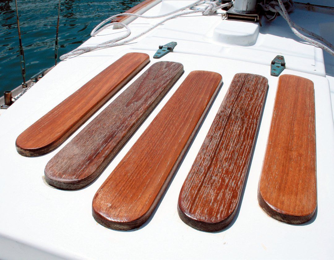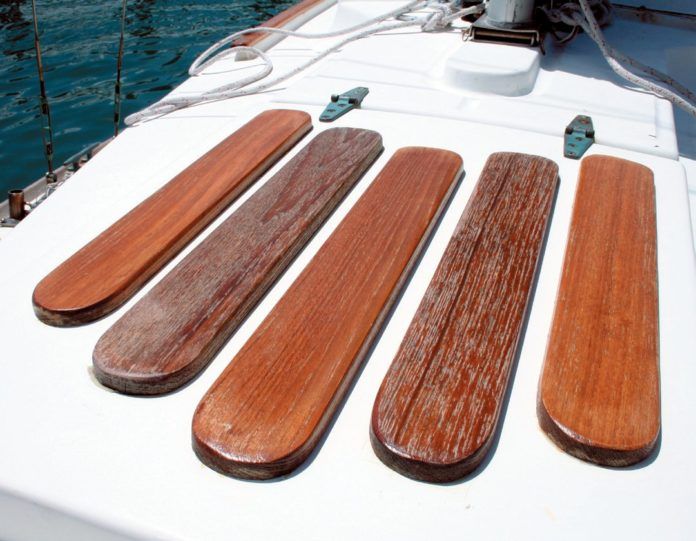 I own a 42-foot Pearson 424 with lots of bright work. I’ve absolutely had it with Cetol! There must be something that is easier to use than this. It forms a dark coating after a few years and begins to peel in splotches. Then you have to remove it, clean the teak, and start over. Oh, the stuff goes on clear so if you spill a drop on your gelcoat, you can’t see it until it ambers. Once that happens, you can never get it off. I’m trying Semco Natural. I tried a small area a couple of years ago and so far have had good luck. While it isn’t as durable as Cetol, it doesn’t build-up.