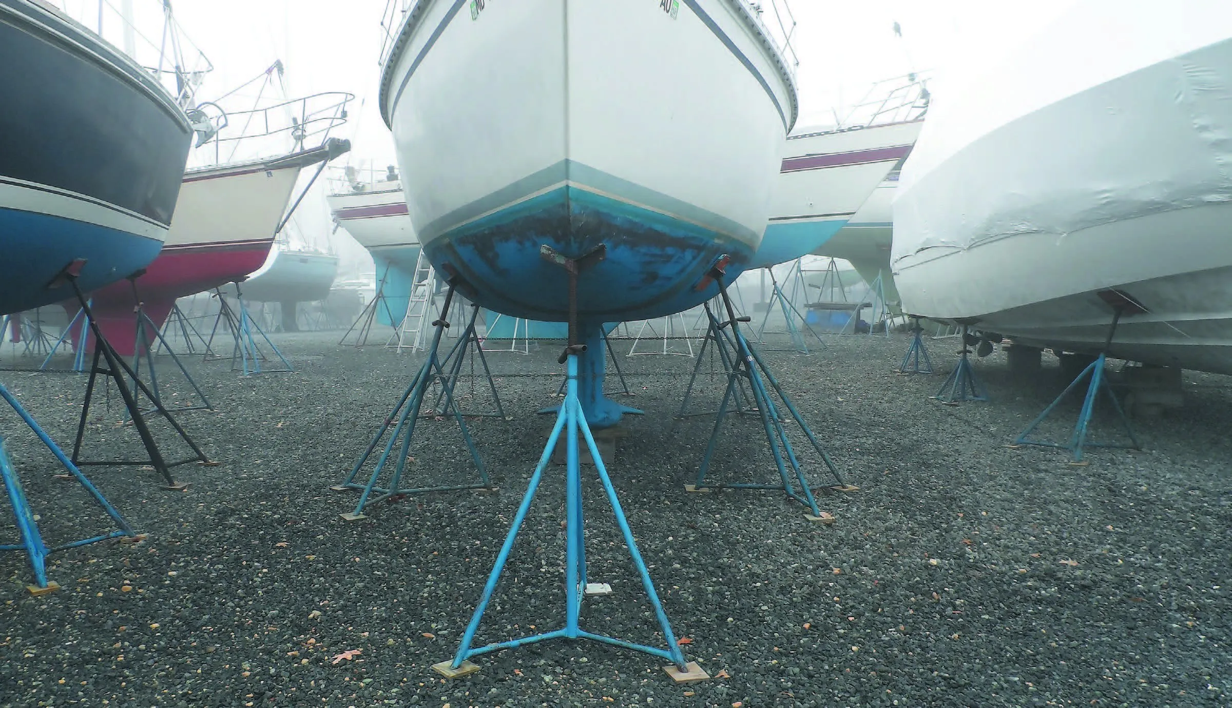 For 95 percent of monohull blocking, solid wooden blocks support the keel, and angled boat stands connected with chains keep the boat in balance. However, there are a few exceptions: