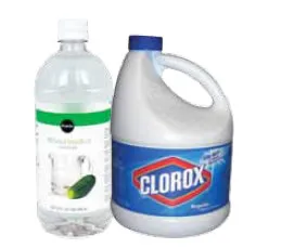 For cleaning, mix a chlorine-water solution using a quarter-cup (2 ounces) of Clorox or Purex household bleach per gallon of water; use one gallon of solution for each 5 gallons of tank capacity. Then pour the mixture into the empty tanks, and fill them the rest of the way with potable water.