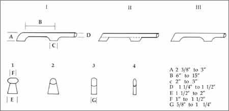 The illustration shows the profile of three common styles of handrail. I is a traditionally rounded rail. II is a modern, somewhat angular style. And III is a combination style.