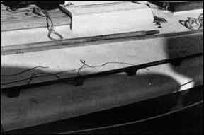 While the glue sets you can either clamp the pieces or fasten them with screws or ringed boat nails driven into holes drilled well out toward the fore and aft edges of the legs. Remember, you’re eventually going to have to run a bolt down through the center of the leg and through the deck to attach the rails to the boat.