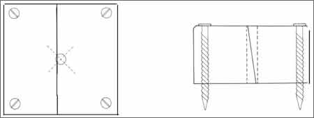 To mount the fitting, hold the two halves togehter and center the unit over the connector hole already drilled in the deck. Use an awl through the screw holes to prick the deck, or, drill one hole first and screw the fitting in place with one screw, then drill the remaining holes through the holes already in the wood block.
