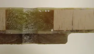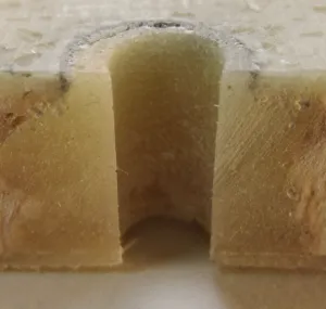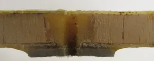 However, the method did not fare as well during our test with damp core. For that test, we made a plug in a balsa core section that had been soaked in water for two weeks and then allowed to dry for 8 hours. In this case, the foaming was extensive and the resulting plug was porous and weak, much like the core material itself.