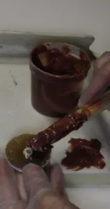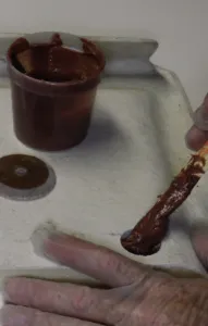 • Fill the hole with thickened epoxy, leaving it slightly proud. Thinly butter the backing plate and the backing plate contact area, which should be marked in pencil.