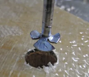 In the traditional method, a hole is drilled through the top skin only, at least as large as the fastener and large enough to admit the core removal tool of your choice. The core is removed by moving a cutter up and down between the core skins and around the circumference of the hole until the core is dust. You need to pay special attention to the insides of the top and bottom skins, because that top-to-bottom bond is what helps maintain strength in the laminated structure.