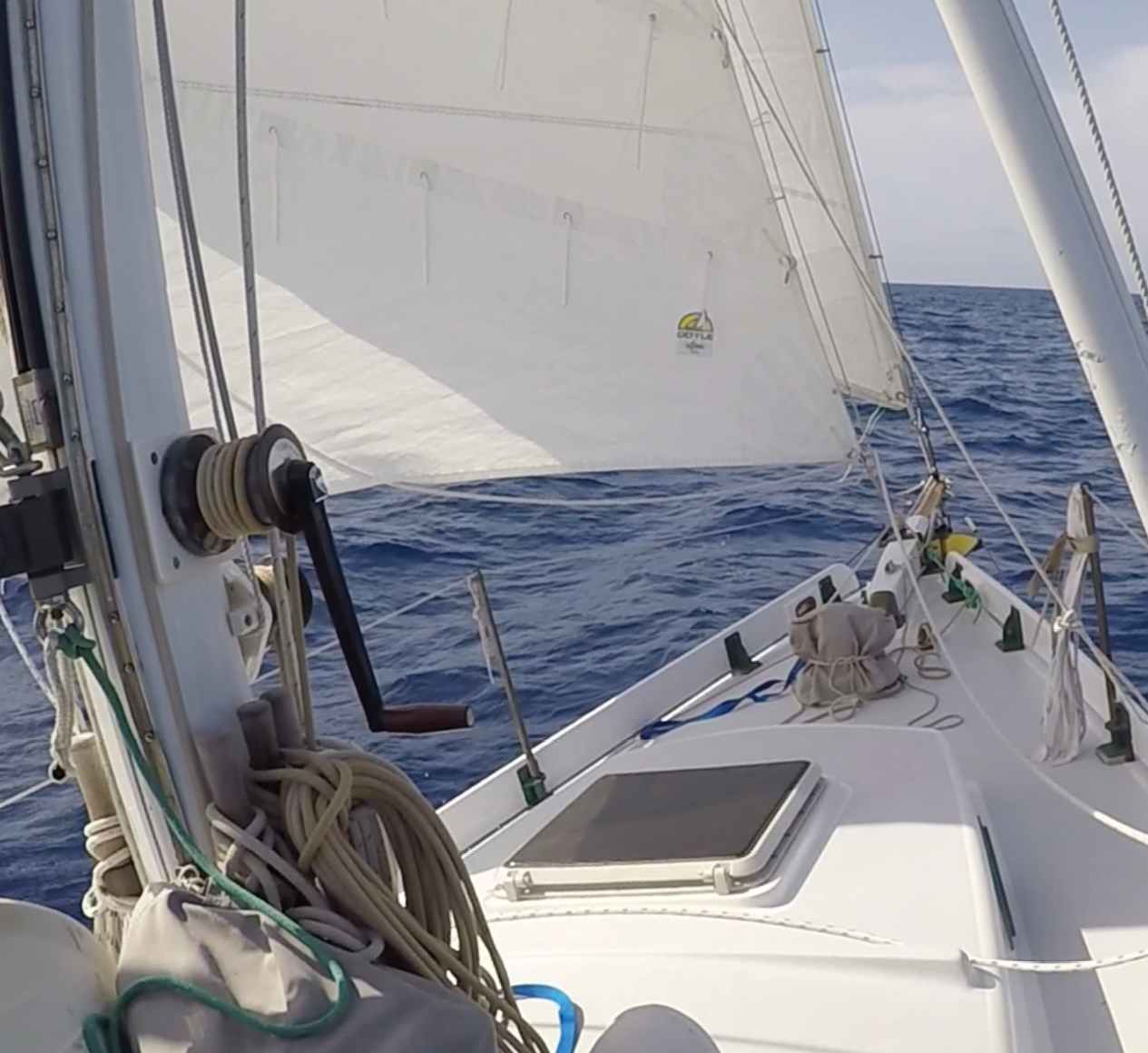 We eliminated the Cape Dory stayail boom as I felt it provided limited value and could be a danger when working on the foredeck offshore. We had worked hard to fill in all the holes on the gunwale and I did not want to install a dedicated track for either the genoa or the staysail which just meant more holes in the deck.