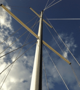 Once I knew what I wanted, I provided the design to Quates and he performed the structural engineering computations to ensure the mast was plenty strong enough for ocean voyaging in any latitude. He chose a lighter, thinner spar section incorporating double spreaders and running backstays to be used when sailing offshore with the staysail.