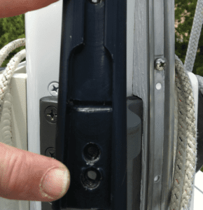 A single screw drilled and tapped into the mast held the Strong Track in place. Make sure the track matches your luff groove.