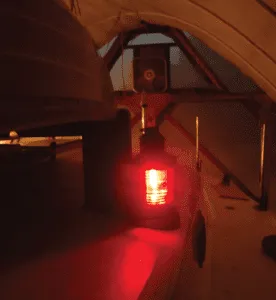 Because we did not install an engine, I had no way to generate electricity for navigation lights. So, I located a set of antique Perko kerosene nav lamps to include a 135-degree-arc sternlight and installed new burners that included glass chimneys so they will stay lit in high winds. Some argue they are not legal. My interpretation of the international collision regs (COLREGS), is that they are.